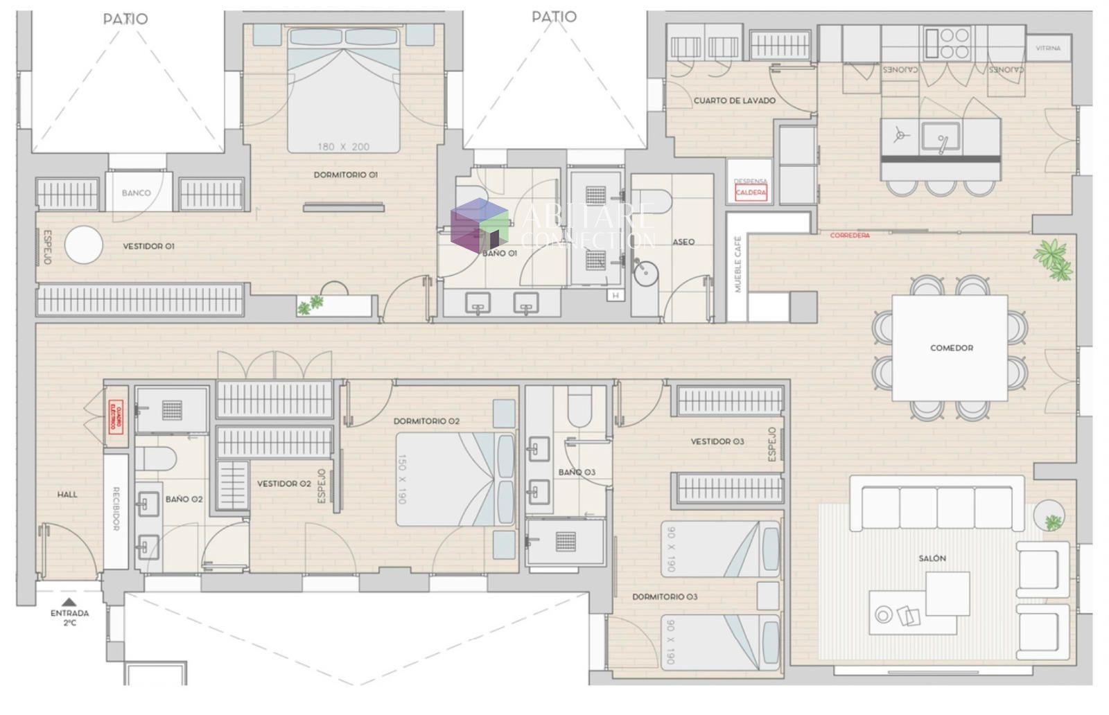 220 m2   |  3 Habitaciones  |  3 Baños  |  Planta 2   |