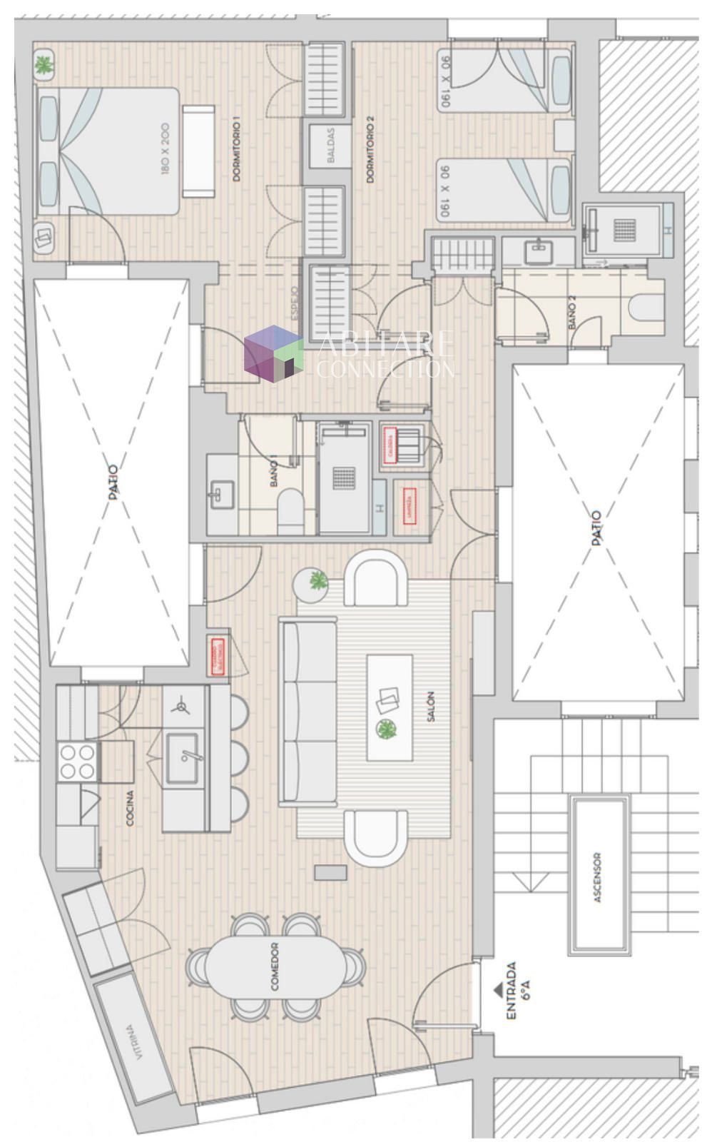 105 m2   |  2 Habitaciones  |  2 Baños  |  Planta 6   |