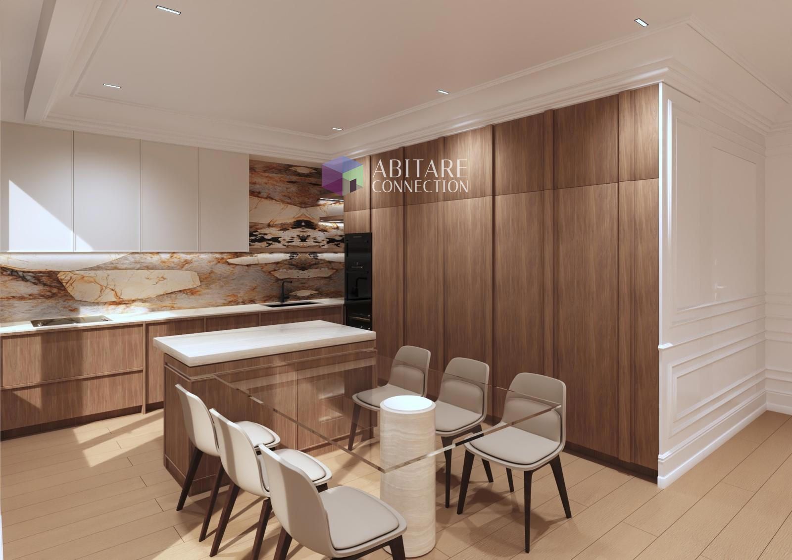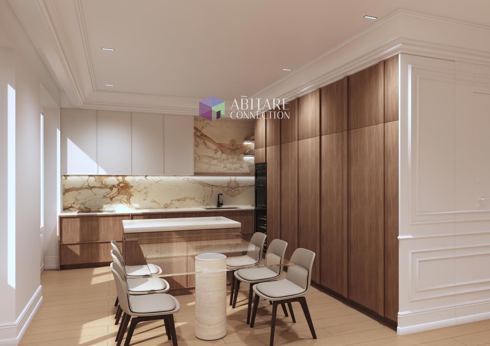 La zona social se distribuye en un amplio y luminoso salón-comedor integrado con una preciosa cocina americana hecha a medida en madera y mármol. La orientación exterior y los grandes ventanales permiten una excelente entrada de luz natural, que realza cada rincón de la vivienda.