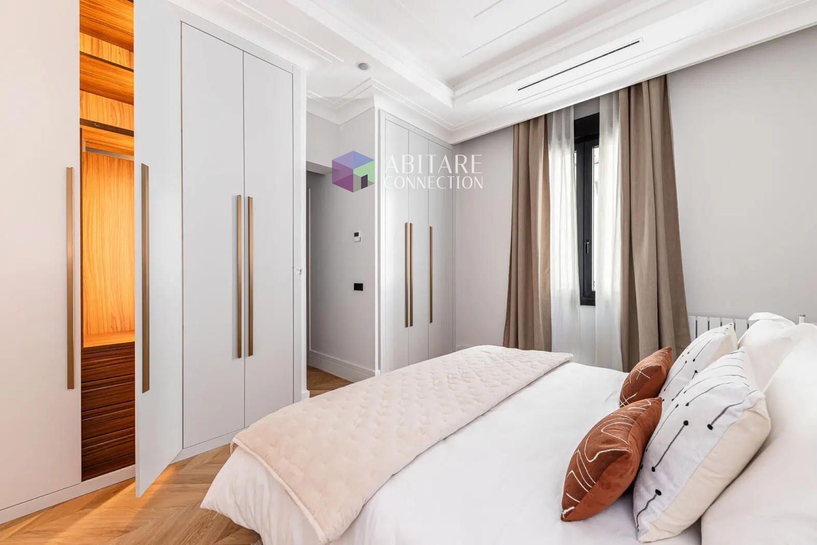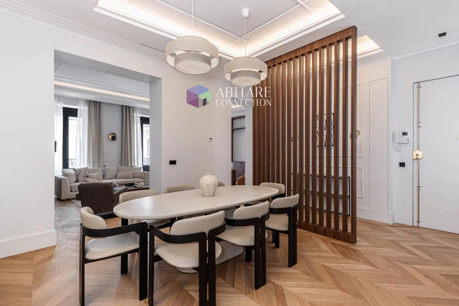 En el prestigioso barrio de Recoletos, distrito Salamanca, se ubica esta elegante vivienda en proceso de reforma de aproximadamente 265 m², situada en la primera planta de un edificio clásico con ascensor y portal restaurado.