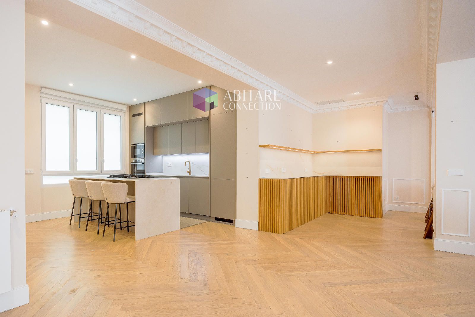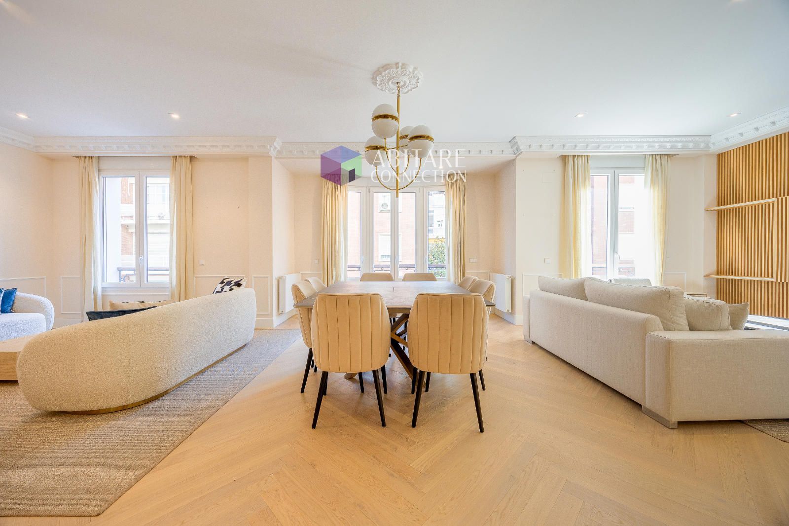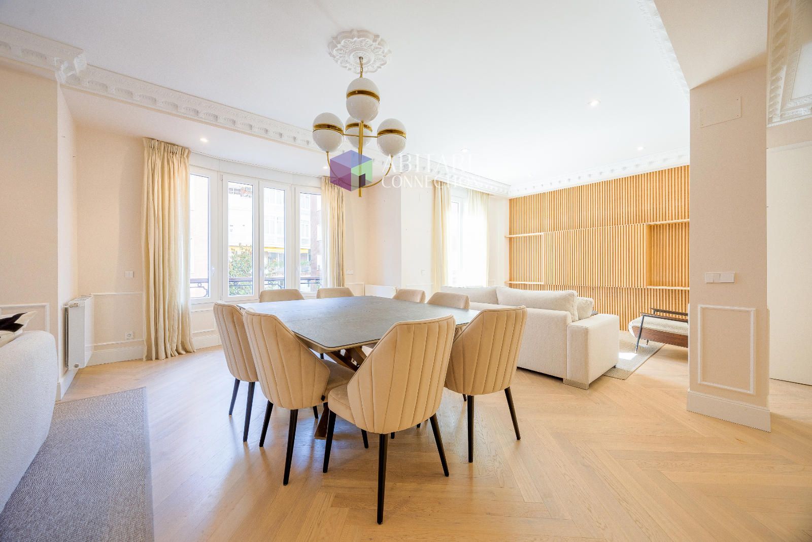 En el prestigioso barrio de Castellana, Salamanca, se encuentra esta exclusiva vivienda de 233 m², ubicada en la cuarta planta de una finca clásica de 1944 con portero.