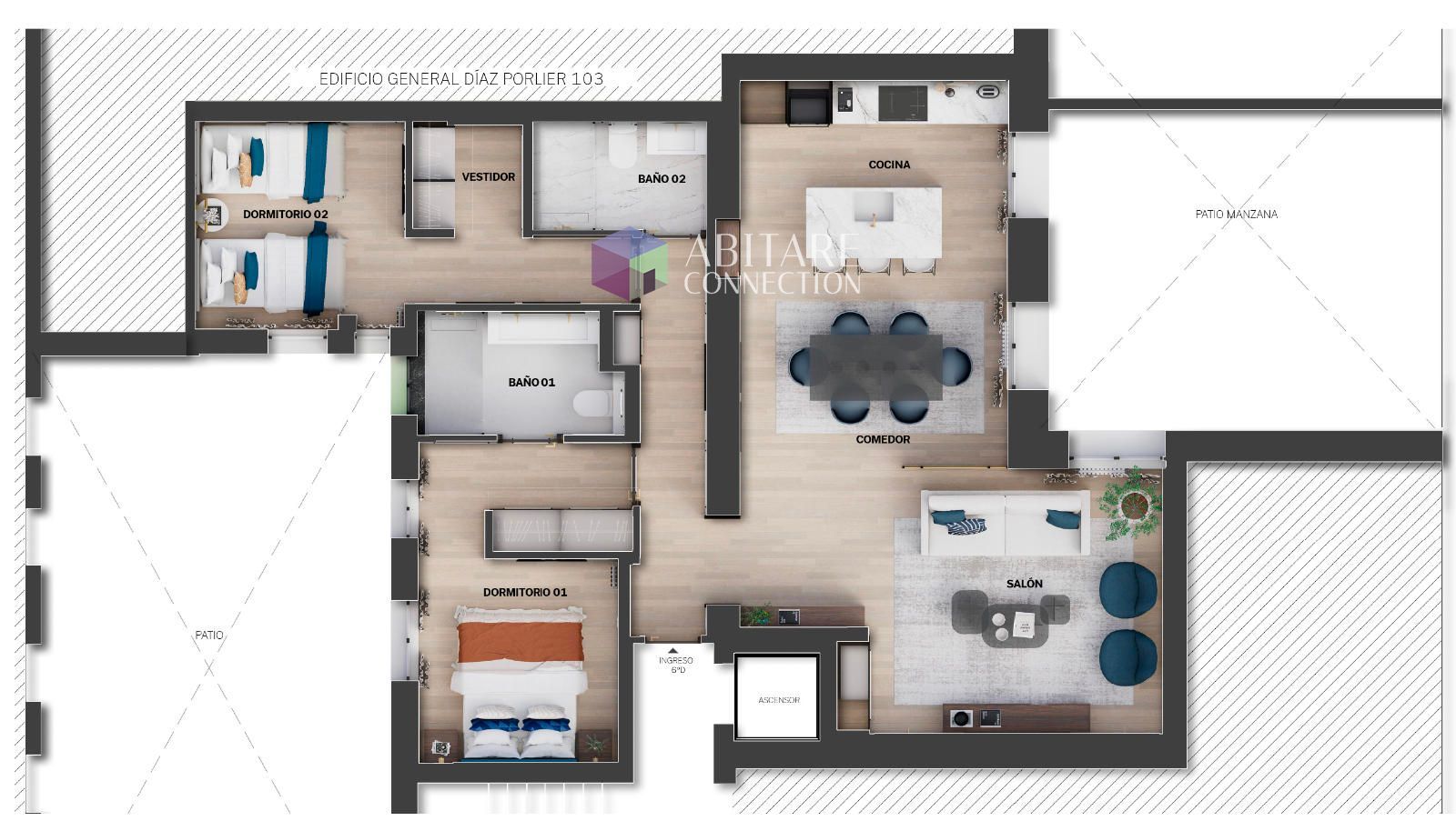 La vivienda dispone de 2 dormitorios y 2 baños completos, además de un amplio salón-comedor y cocina equipada, diseñada con acabados modernos que combinan funcionalidad y elegancia. Se entrega amueblado, listo para entrar a vivir.