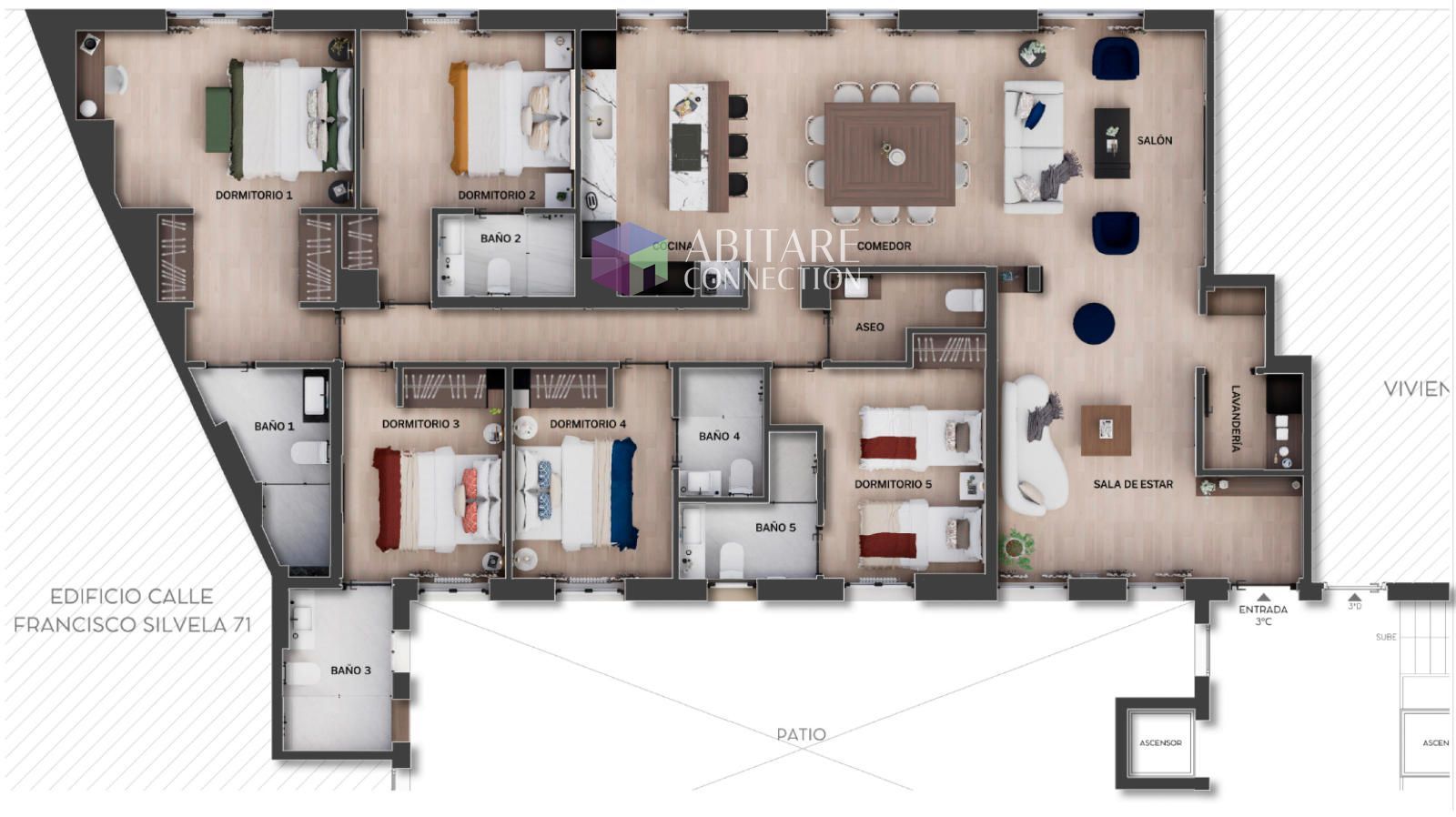 213 m2   |  5 Habitaciones  |  6 Baños  |  Planta 3   |