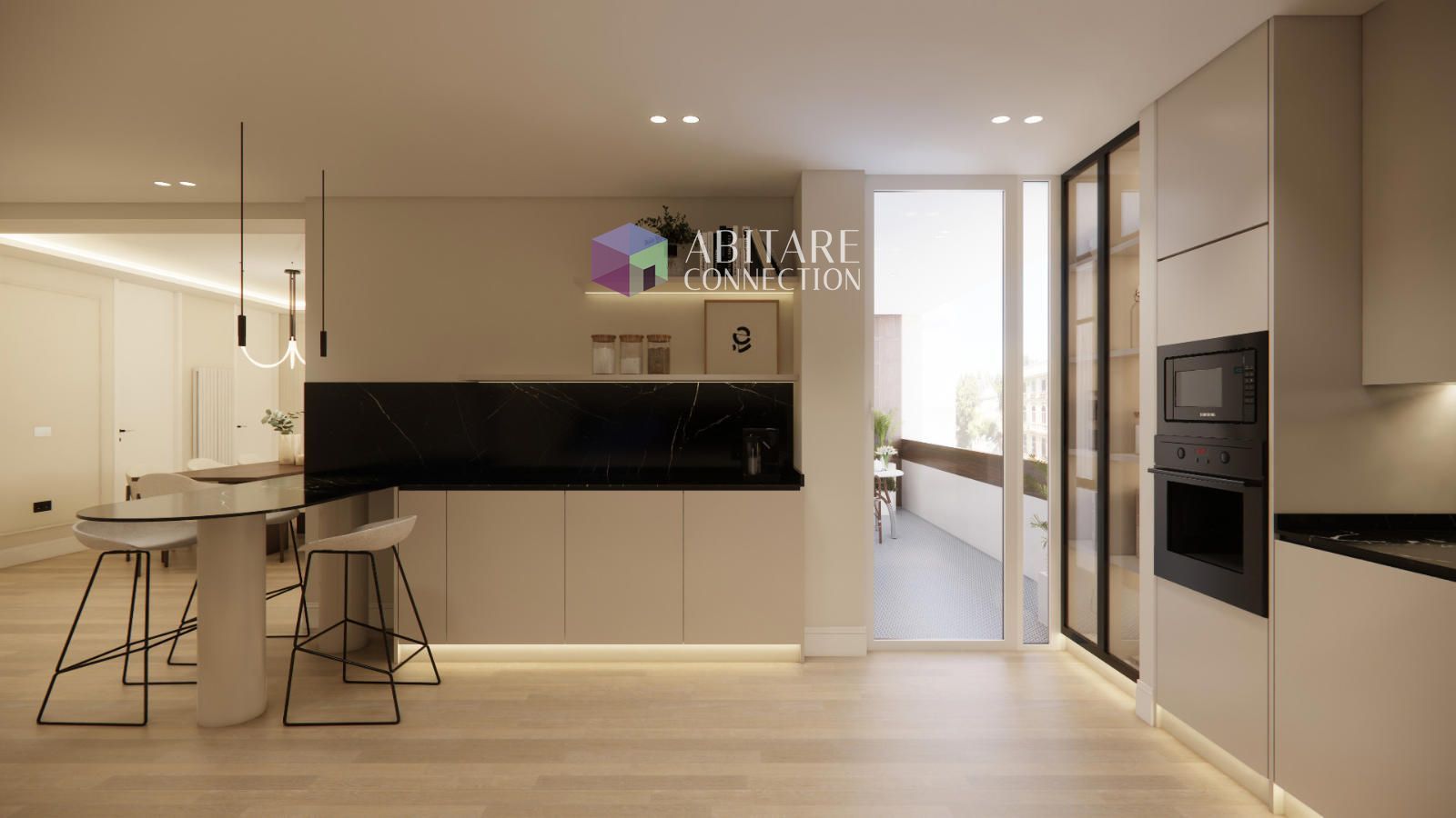 El salón-comedor se abre hacia una terraza privada, ideal para disfrutar del aire libre o relajarse en un entorno tranquilo y luminoso. La cocina de diseño integrada, equipada con electrodomésticos de última generación, combina estética contemporánea y practicidad.