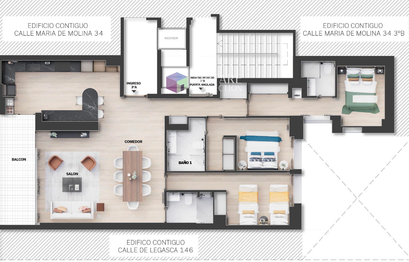 162 m2   |  3 Habitaciones  |  3 Baños  |  Planta 3   |