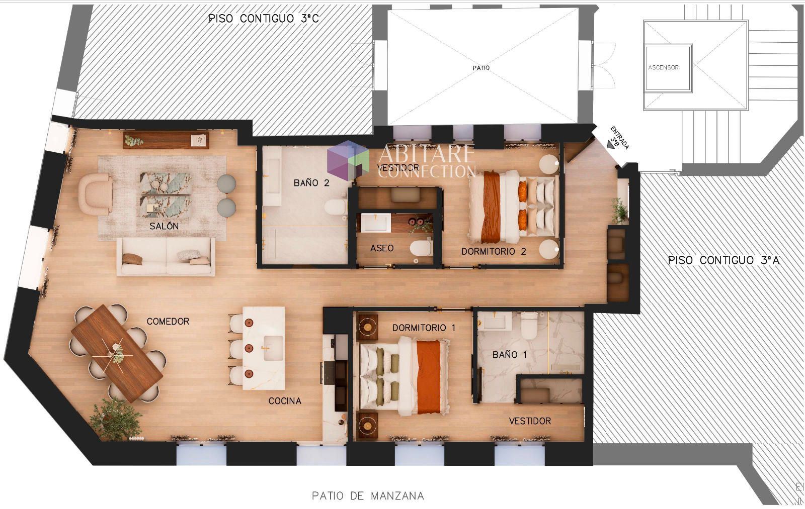 La vivienda se distribuye en dos amplios dormitorios, dos baños de diseño (uno en suite), un salón-comedor luminoso y una cocina abierta totalmente equipada con electrodomésticos de última generación. Cada detalle ha sido cuidadosamente pensado, desde los materiales de alta calidad hasta la decoración interior, ofreciendo un espacio sofisticado y confortable.