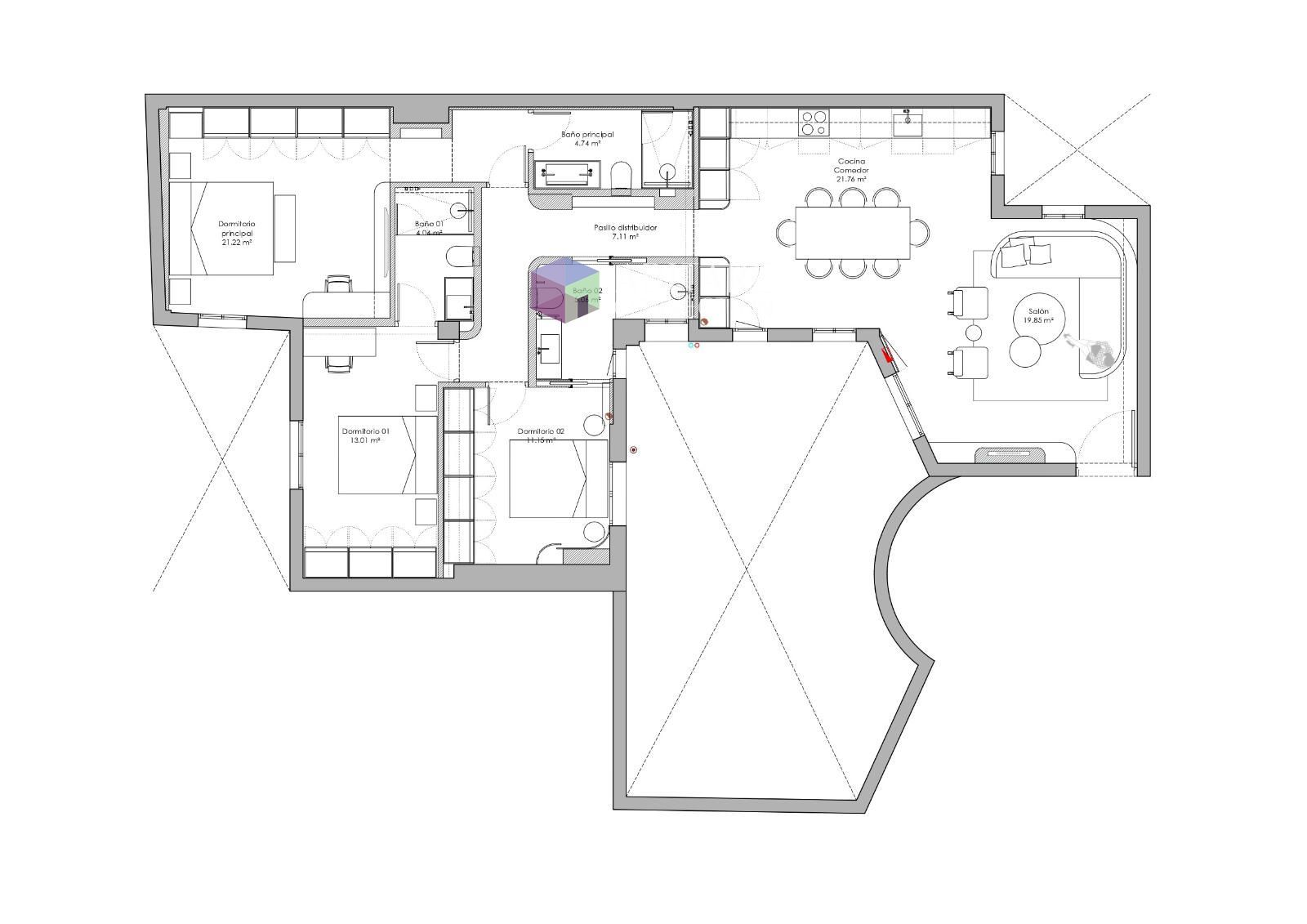 La vivienda, actualmente en proceso de reforma integral y amueblamiento, contará con tres amplias habitaciones y materiales de alta gama. Su distribución equilibrada y la excelente orientación permiten aprovechar al máximo la luz natural, creando espacios luminosos, cálidos y funcionales. Los techos altos y los acabados cuidados refuerzan su carácter sofisticado y atemporal.