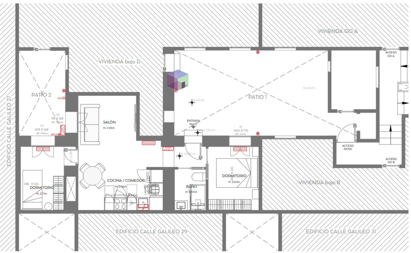 El salón y el dormitorio cuentan con orientación interior, proporcionando tranquilidad y privacidad en un entorno urbano. La propiedad dispone de calefacción individual de gas, aire acondicionado y ascensor, garantizando comodidad y funcionalidad en el día a día.
