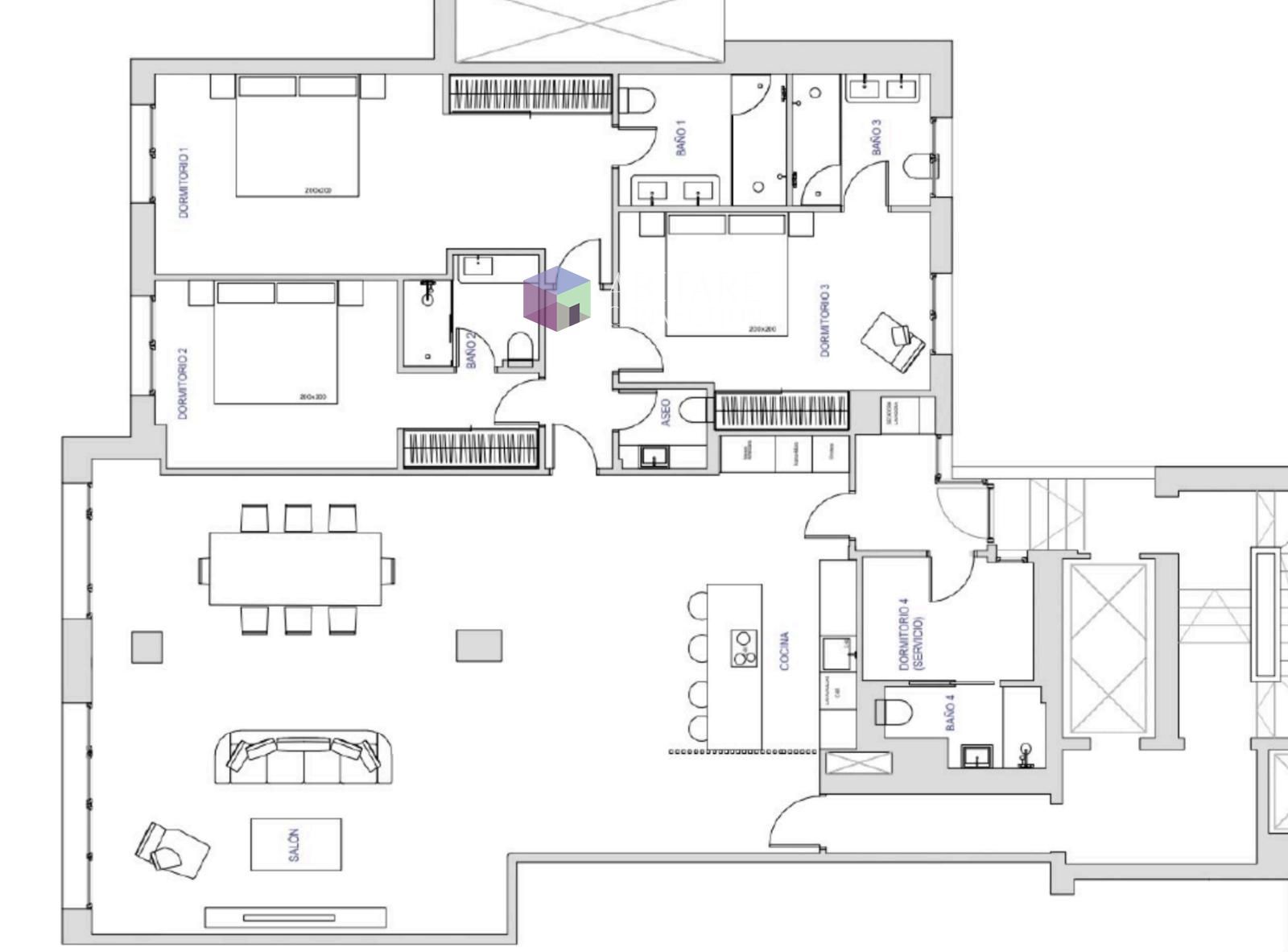 La propiedad ofrece una distribución equilibrada con cuatro amplios dormitorios en suite, cada uno con su propio baño, y un aseo de invitados. El espacioso salón y la cocina independiente crean un entorno funcional y representativo, ideal tanto para la vida familiar como para recibir invitados.