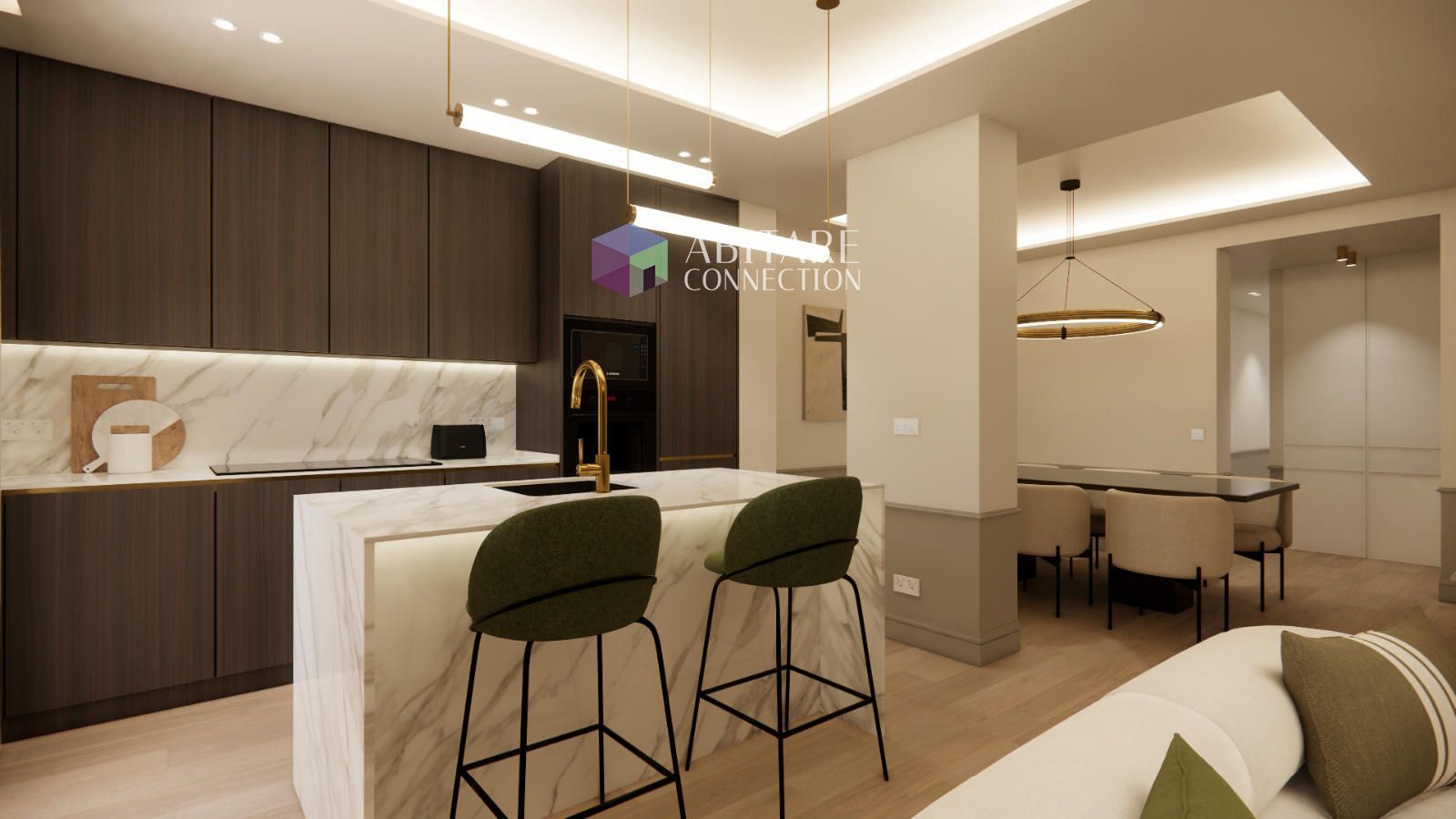 El salón, amplio y luminoso gracias a su orientación sur, se integra con una cocina moderna totalmente equipada, creando un espacio funcional y acogedor para la vida diaria. Las habitaciones, con baños completos, proporcionan privacidad y confort para toda la familia.
