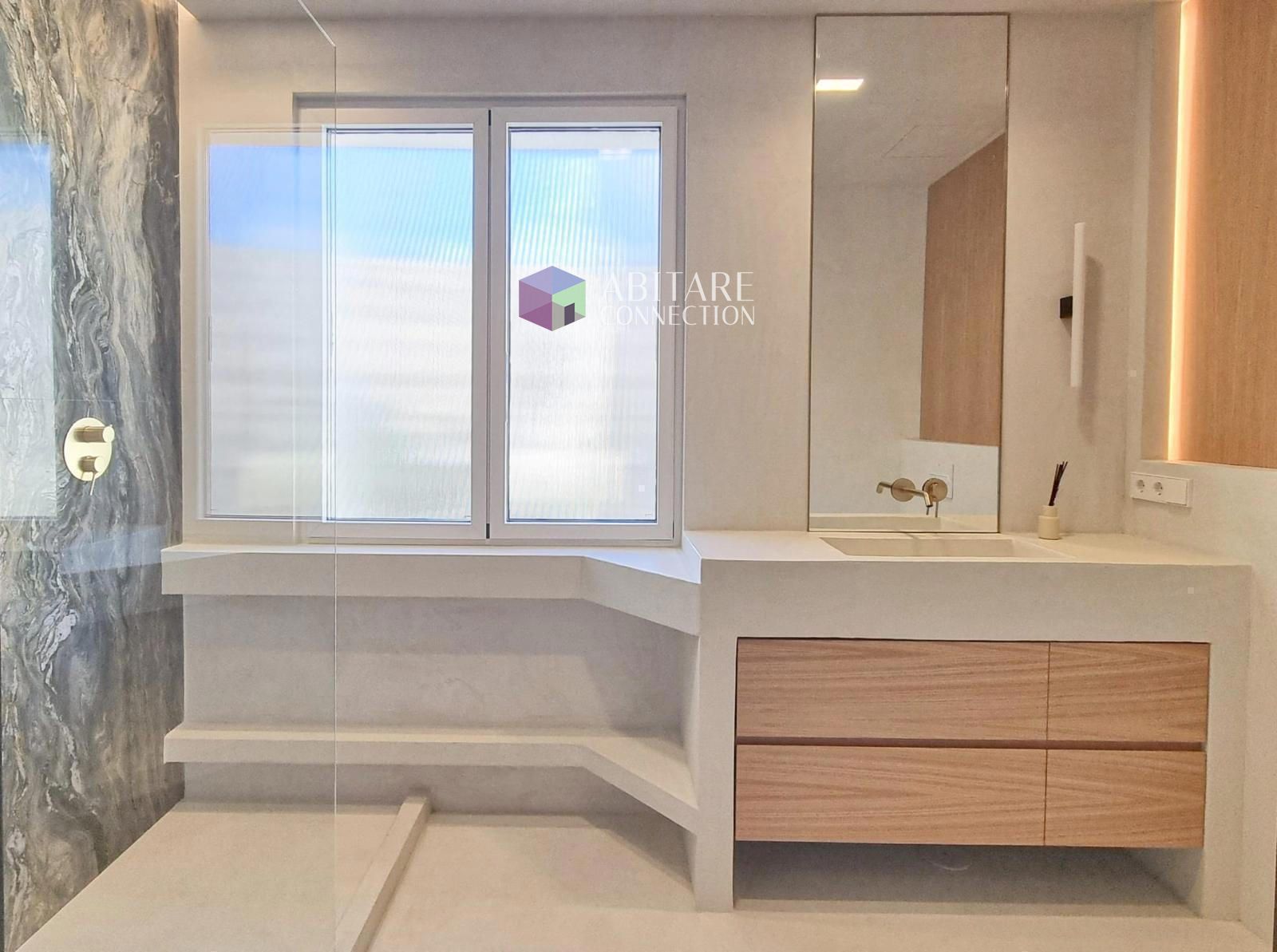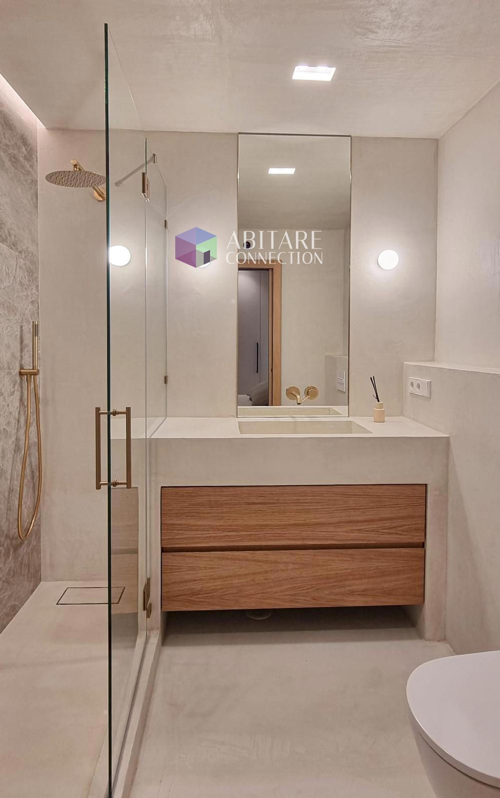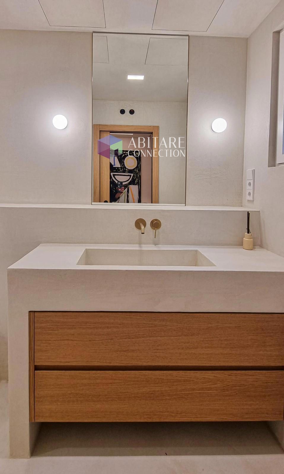 Los acabados en madera de roble natural y piedra natural aportan una elegancia sobria y duradera, mientras que el aislamiento acústico asegura privacidad y tranquilidad. El sistema de climatización combina hilo radiante/refrescante y aire acondicionado por conductos con control Airzone, garantizando confort y eficiencia energética.