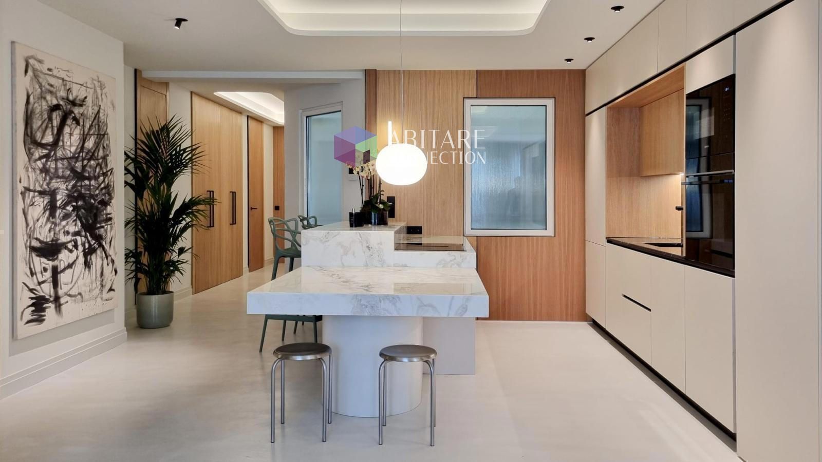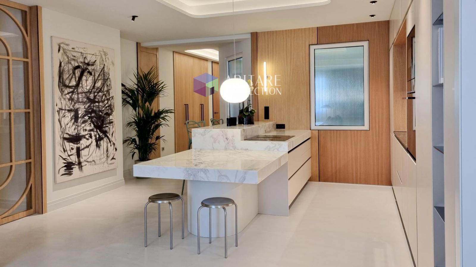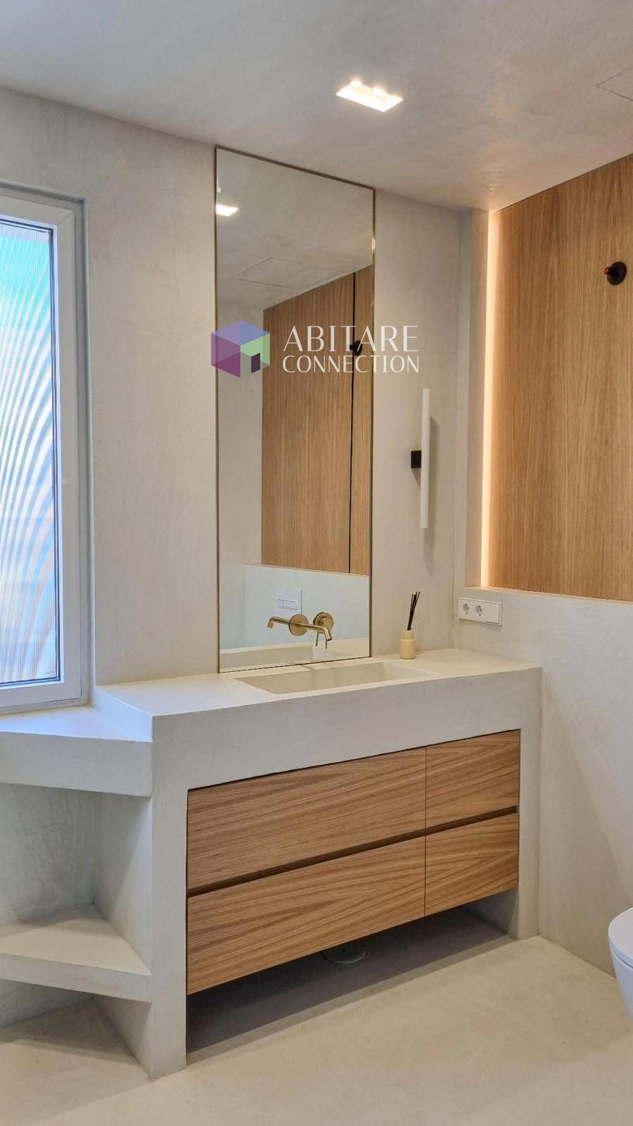 Los acabados en madera de roble natural y piedra natural aportan una elegancia sobria y duradera, mientras que el aislamiento acústico asegura privacidad y tranquilidad. El sistema de climatización combina hilo radiante/refrescante y aire acondicionado por conductos con control Airzone, garantizando confort y eficiencia energética.