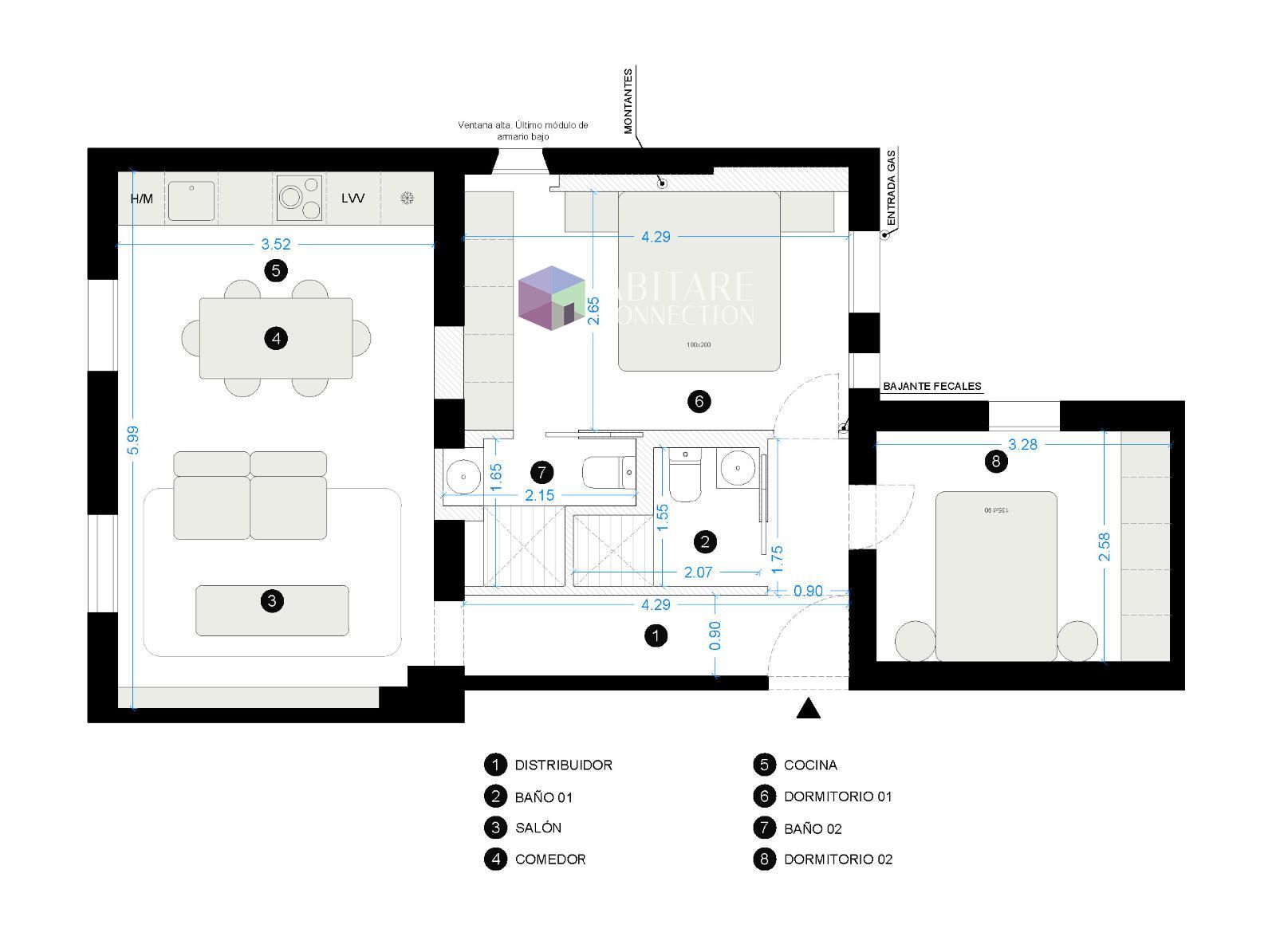 Aruná, que significa amanecer, refleja la esencia de este piso interior en Goya: luz, tranquilidad y la posibilidad de un nuevo comienzo. Con 68 m², techos altos y orientación este, esta vivienda ofrece una distribución flexible que permite configurar hasta tres dormitorios, adaptándose a tus necesidades y estilo de vida.